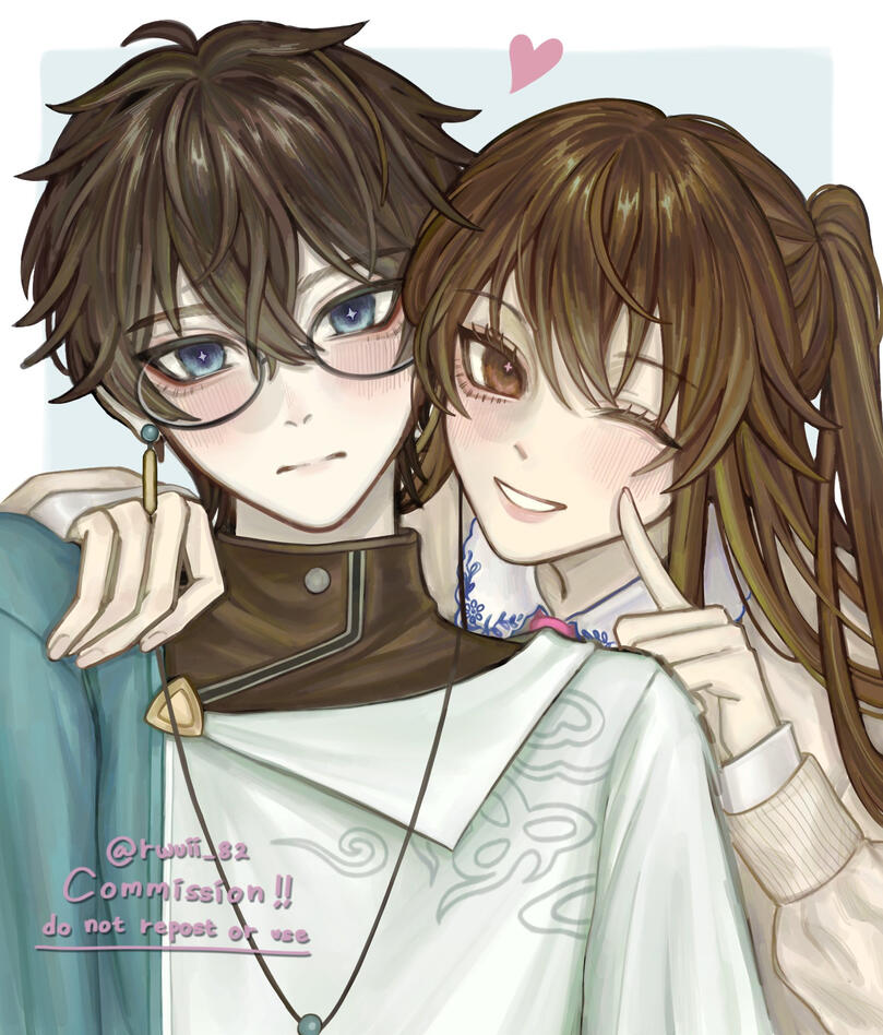 | Fanart, original character, kemonomimi, couple, simple background | NSFW, real person, furry, detailed armor/-mecha, elder, gore (slight blood is ok) |